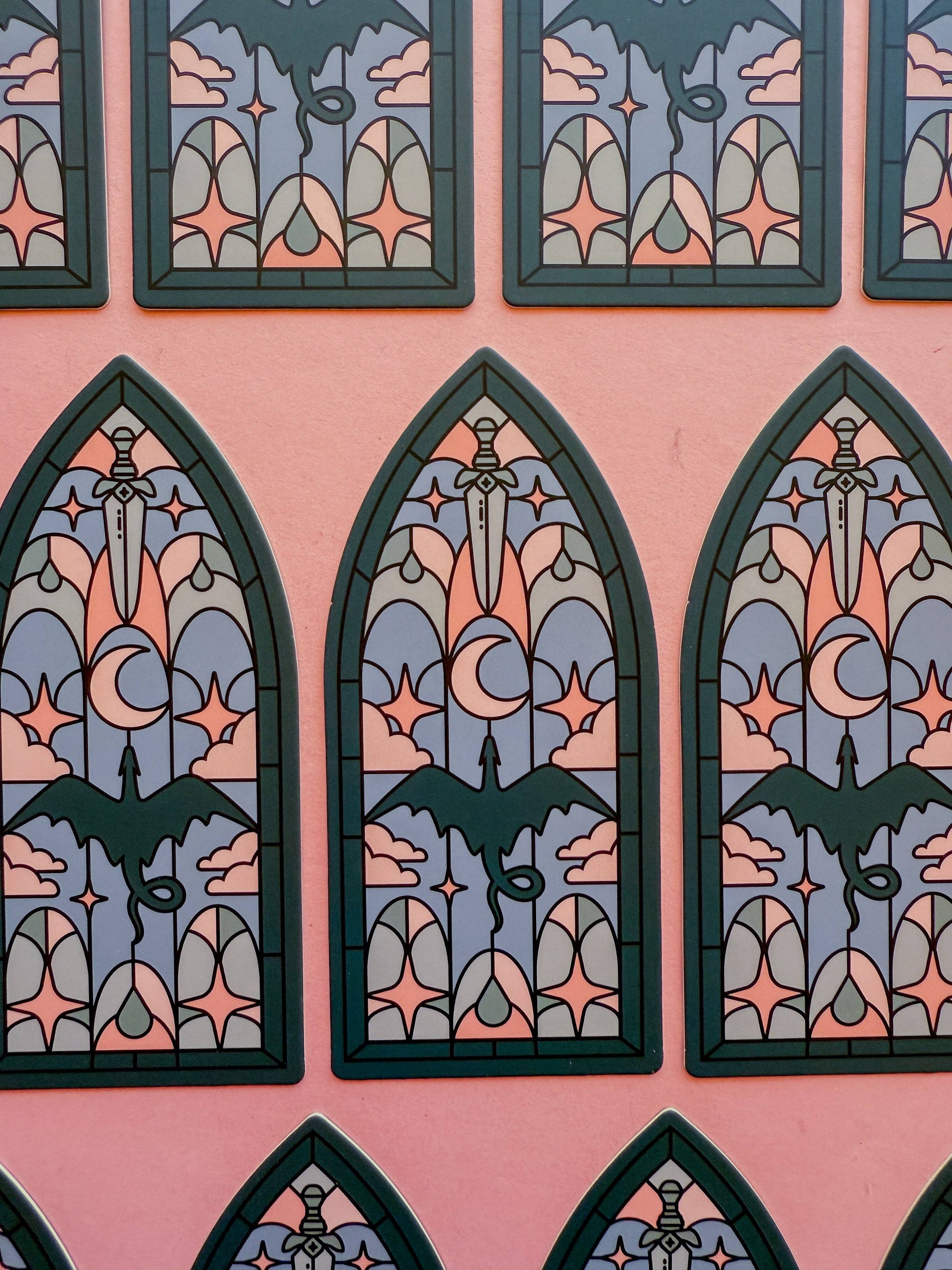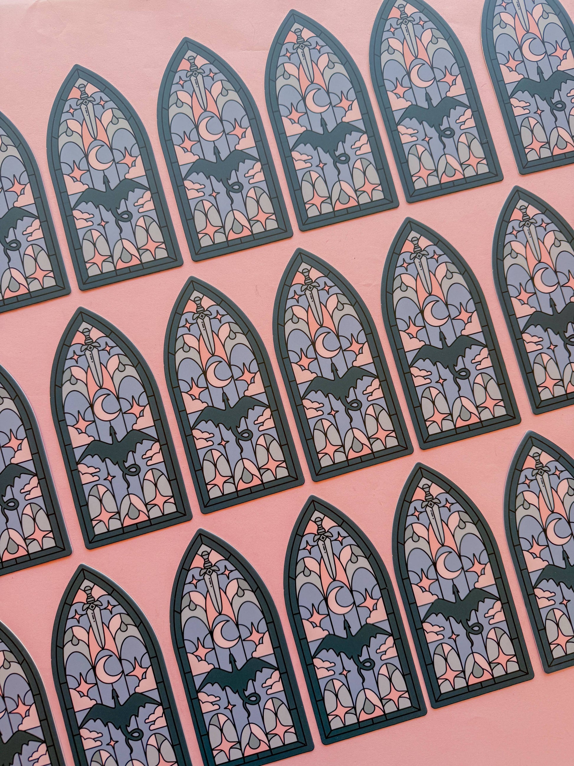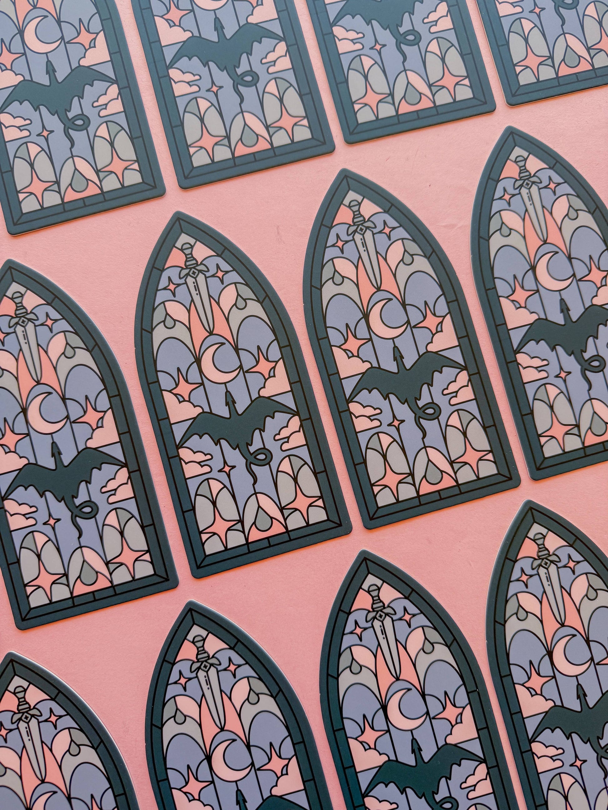 Dragon Stainglass Bookmark: Teal & Pink